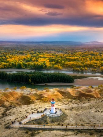 的兩種地貌巧妙的融合在壹起,構(gòu)成了壹幅渾然天成的別樣景致,在俄羅斯風(fēng)情小鎮(zhèn)布爾津稍作休息后乘車前往北屯。