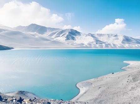 班迪爾藍(lán)湖,也被稱為下坂地水庫、坎兒洋龍池。地處帕米爾高原的塔什庫爾干縣班迪爾鄉(xiāng),海拔約3050米。水域面積約為3平方公里。水深:約為30米。班迪爾藍(lán)湖的湖水呈現(xiàn)出深邃的藍(lán)色,這是由于湖水中含有高濃度的礦物質(zhì)。湖泊周圍是昆侖山脈的裸露巖層,與湖泊的藍(lán)色形成了鮮明的對比,給人一種冰冷而深邃的美感。游客